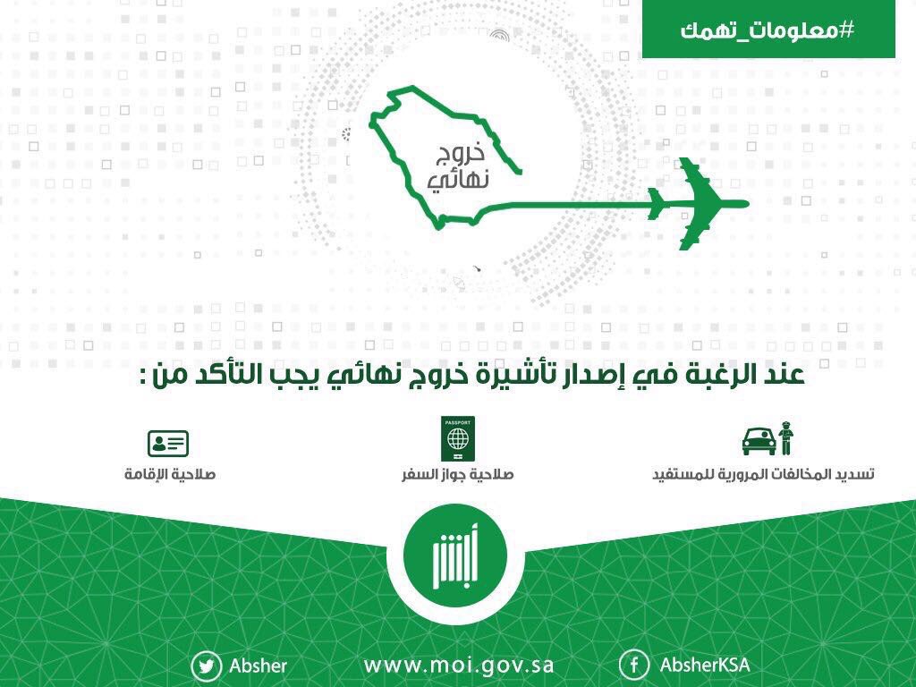 الجوازات ابشر On Twitter عزيزي المقيم عند الرغبة في إصدار تأشيرة خروج نهائي تأكد من معلومات تهمك