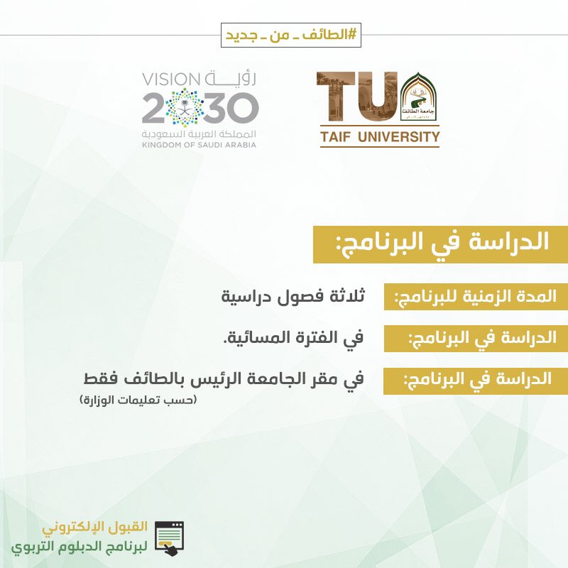 جامعة الطائف On Twitter تفاصيل الدراسة في برنامج الدبلوم التربوي بـ جامعة الطائف