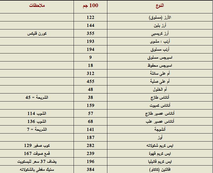 بالصور جدول السعرات الحرارية للاكلات المصرية 2021 جدول السعرات الحرايه للأطعمه 2021 جدول بكل السعرات الحراريه للاكلات منتدى مملكة الدوشجية